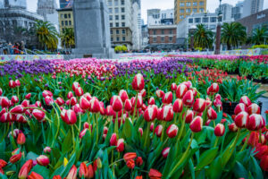Held traditionally in honor of International Women’s Day, Tulip Day Presented by JPMorganChase on Saturday, March 21st kicks off San Francisco’s annual Union Square in Bloom initiative, in which businesses celebrate the arrival of Spring and Summer with floral displays, food, cocktails, and events, to celebrate Union Square’s rich floral tradition.